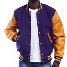 Mens Varsity Jacket Genuine Leather Sleeve and Wool Blend Letterman College Varsity Jackets