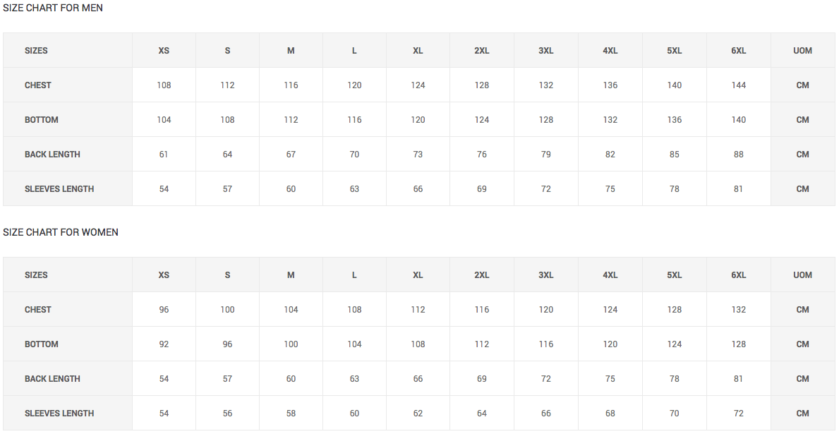 SIZE CHARTThis size chart helps to find out your measurement, please measure your chest/bust circumference. You then match it with the size in the table below. The jacket’s measurements that corresponds to your size are available in the table as well. 1 inch = 2.54 cm, Please allow a human error margin up to 1 cm – 2 cm. If you don’t find your measurements in the table we have an option to collect your custom measurements on Design Your Jacket Page. Please click here to refer to our Return and Exchange Policy prior to placing your order. |